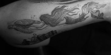 Fine Line. Blackwork. Black and grey. No Realism. No portraits. No face, neck, private areas, nipples.